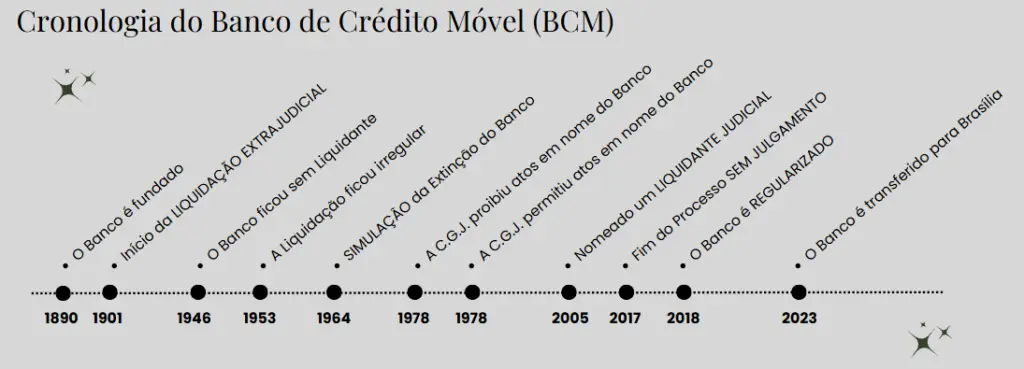 Tese Central: O Banco de Crédito Móvel (BCM), fundado em 1890, nunca foi legalmente extinto. Após 116 anos em liquidação extrajudicial irregular (1901-2017), a instituição foi regularizada e reaberta em 2018 como BCM – Ativos Imobiliários S.A., mantendo todas as responsabilidades e direitos contraídos desde sua fundação.